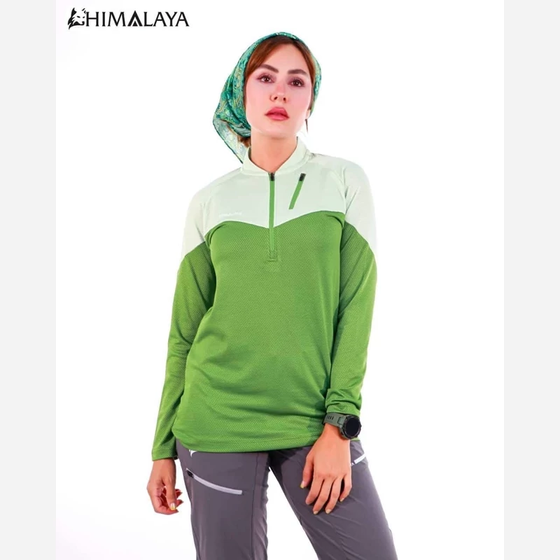 بلوز نیم زیپ تنفسی کوهنوردی دو رنگ زنانه CW27 هیمالیا