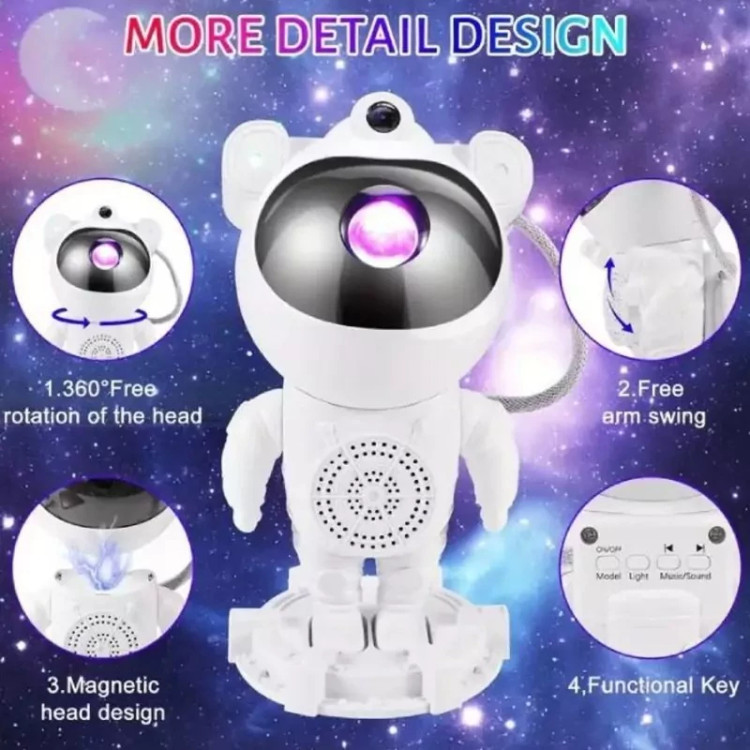 چراغ خواب پروژکتوری موزیکال و اسپیکر دار کهکشانی فضانورد ایستاده (سایز بزرگ)