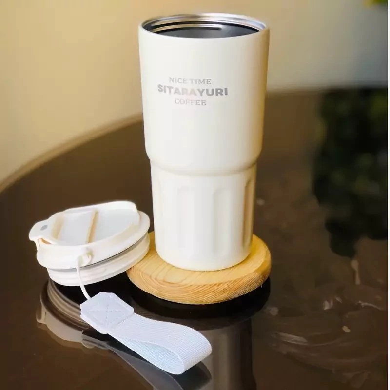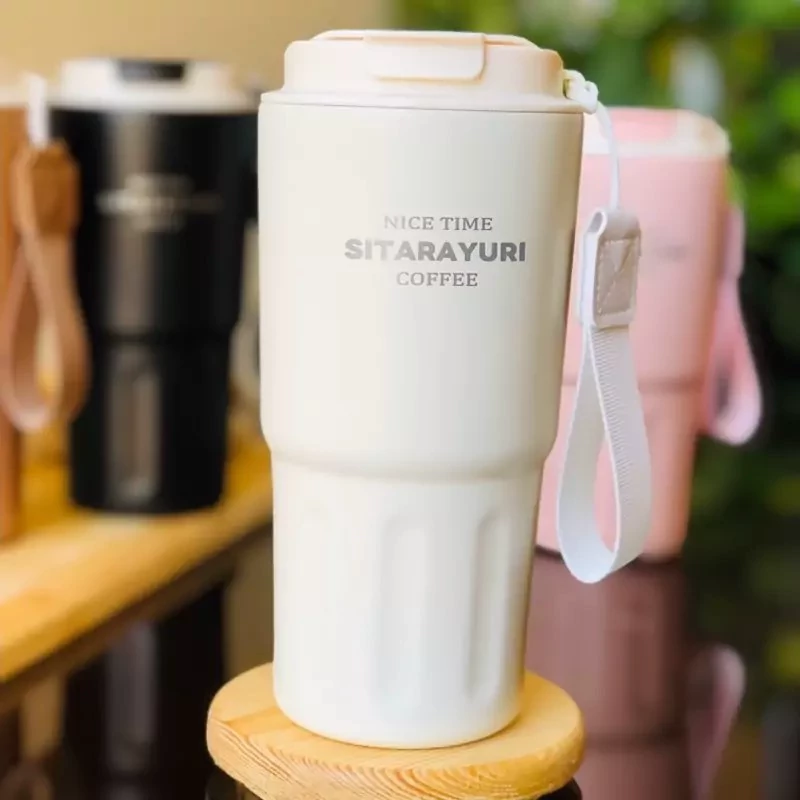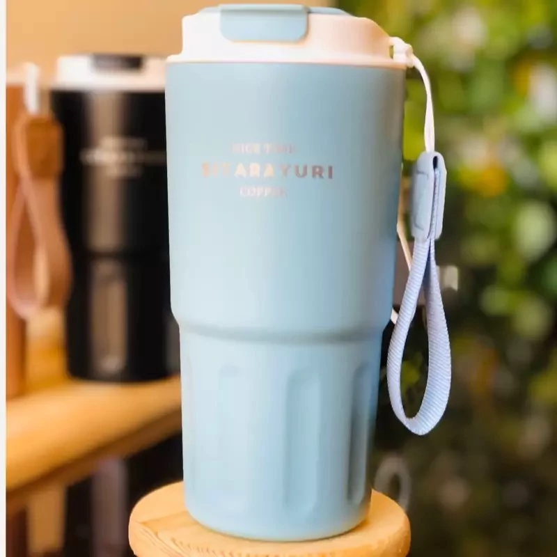 تراول ماگ 600 میل SITARAYURI استیل 304 دو جداره ضد زنگ دارای بند و رنگ بندی کامل دارای جعبه مناسب کادو لبی آسان نوش دارای لرزش گیر