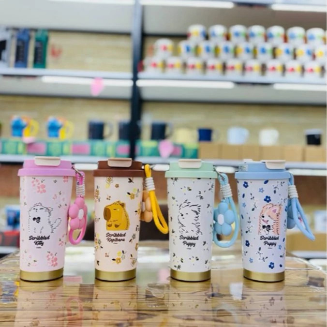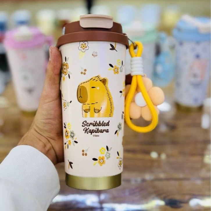 دوجداره برای حفظ دما، درب بدون نشتی، دارای بند دستی برای حمل آسان، طرحهای کارتونی