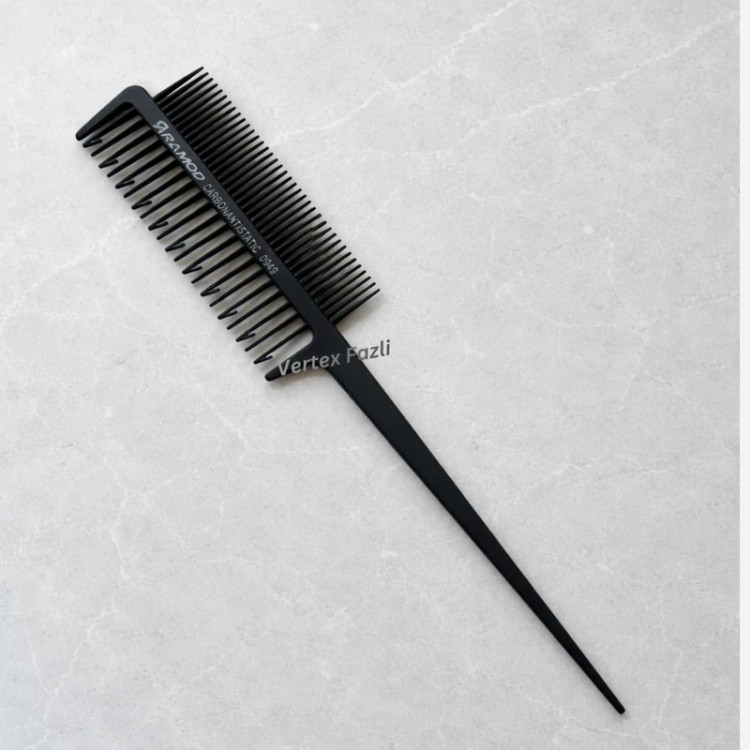 شانه دمباریک حرفهای با دندانههای یکیدرمیان مناسب برای تقسیمبندی دقیق مو، فرق باز کردن، کوتاهی، بلِند و استایل حرفهای. طراحی دمباریک برای جداسازی لایهها و دندانههای ترکیبی برای کنترل یکنواخت مو بدون گیرکردن. ساختهشده از متریال کربنی ضد الکتریسیته ساکن، مناسب استفادهٔ سالنی و خانگی.