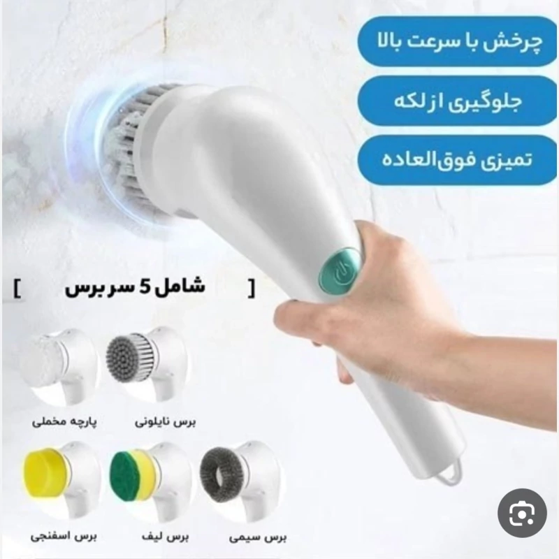 اسکرابر چرخشی برقی دارای 5 سر برس مختلف است که می توانید از آنها برای تمیز کردن وان حمام، آشپزخانه، کباب پز، اجاق گاز، دیوارهای روغنی، کف و موارد دیگر استفاده کنید.
