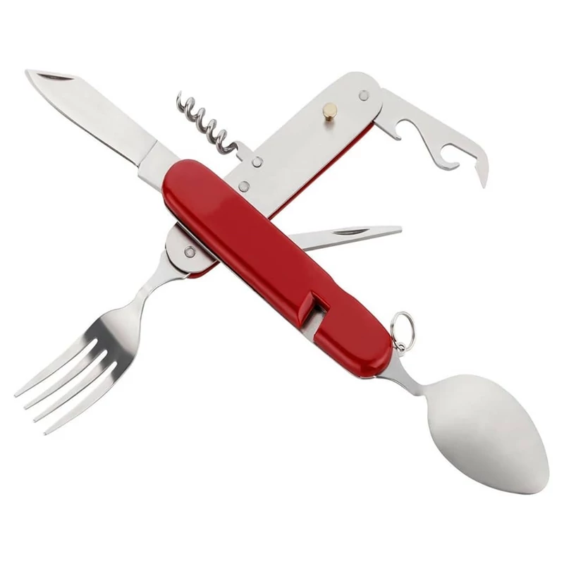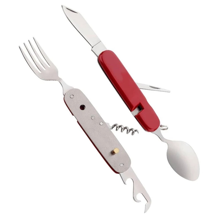 به همراه داشتن تجهیرات مناسب کوهنوردی به شما این قابلیت را می دهد تا بتوانید سریع تر و بهتر از افراد معمولی در طبیعت گردی کارهای لازم را انجام دهید و با این کار، لذت بیشتری از سفر خود ببرید. در میان تجهیزات کوهنوردی ، قاشق و چنگال چندکاره می تواند شما را در حین سرو غذا کمک کند . این ست قاشق و چنگال چندکاره دارای درب بازکن، چاقو ، بطری بازکن، قوطی بازکن ، چنگال ، قاشق ، چوب پنبه باز کن مناسب استفاده در طبیعت گردی ، کمپینگ ، کوهنوردی ، مسافرت و … می باشد . قسمت قاشق و چنگال این ست با استفاده از دو پین از هم جدا می شوند تا بتوانید به راحتی از آن استفاده کنید