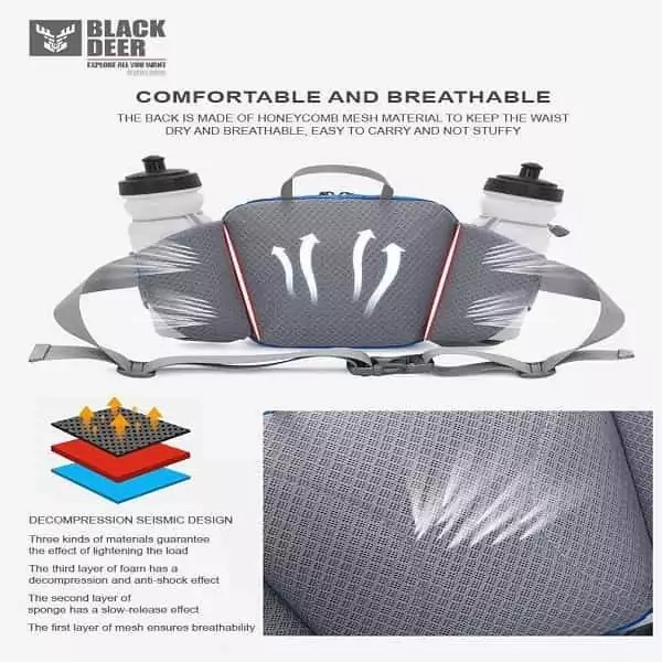 کیف کمری Black Deer مدل 1004 یک مدل عمومی با کاربرد گسترده می باشد که هم برای پیاده روی و هم کوهنوردی و طبیعت گردی و … قابل استفاده می باشد . یکی از ویژگی های اصلی این مدل داشتن دو جیب مخصوص بطری در طرفین آن می باشد که به هنگام پیاده روی بسیار مفید می باشد و در صورتی که جزو کسانی هستید که به هنگام پیاده روی آب فراوان می نوشید این ویژگی برای شما بسیار کاربردی می باشد . از لحاظ ساخت نیز مدل 1004 کیفیت ساخت بسیار بالایی دارد و از زیپ های SBS برای ساخت آن استفاده شده است , پارچه ضد خش و با دوام و توری قسمت پشت نیز به گونه ای است که گردش هوا برقرار بوده و مانع تعریق می شود .