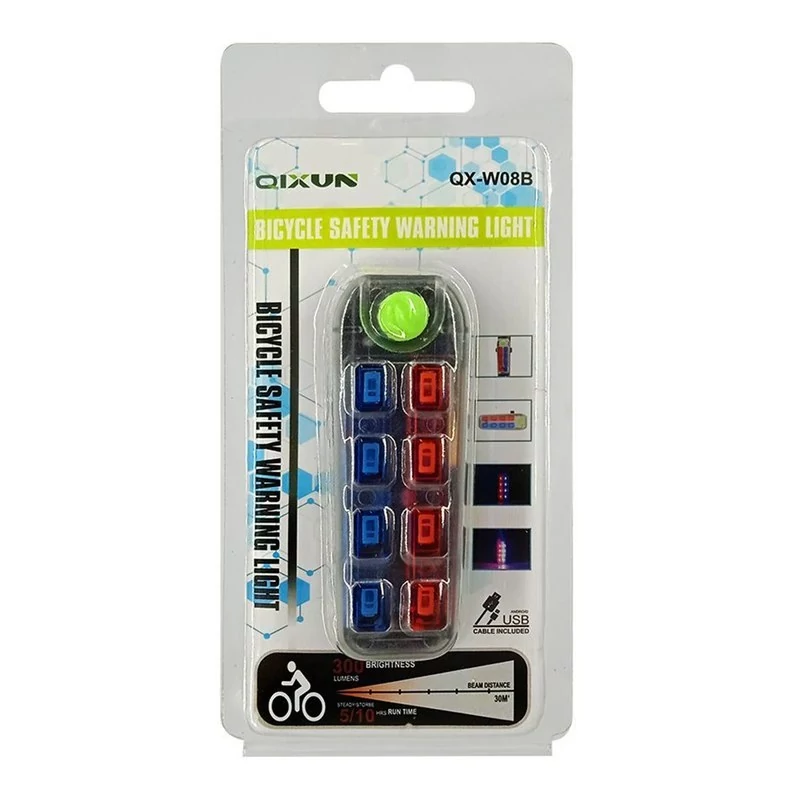 جنس پلاستیک ABS تعداد لامپ 8 عدد ابعاد 7×1.5×2.5 سانتیمتر اقلام همراه سیم شارژر و بست وزن 40 گرم برد نور 30 متر حالات روشنایی 5حالت
