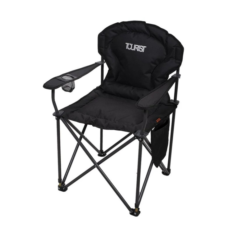 طراحی مناسب و کاربردی صندلی، سبب شده است که باز و بسته کردن آن به سرعت و سهولت انجام شود. جیب توری روی دسته صندلی، محل مناسبی برای قرار دادن وسایلی مانند بطری آب و نوشابه و یا لیوان است. از دیگر ویژگیهای این صندلی وجود جیب برای قرار دادن وسایل موردنیاز، در طرفین است. فریم فلزی رنگ استاتیک و پارچهای از جنس آکسفورد، توانستهاند مقاومت خوبی برای محصول به وجود آورده و عمر و دوام آن را بسیار بالا ببرند. استحکام صندلی تاشو توریست تا حدی است که فردی با وزن 120 کیلوگرم به راحتی میتواند روی آن نشسته و خیالش از بابت مقاومت آن آسوده باشد.