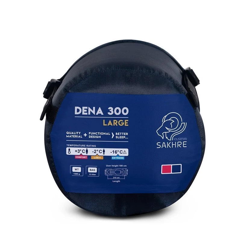 می توان گفت کیسه خواب مدل DENA 300 صخره گرمترین کیسه خواب سری DENA است . این کیسه خواب که در سه سایز بزرگ (XL) ، متوسط (L) و کوچک (M) طراحی و تولید شده است گزینه ای مناسب و منطقی برای برنامه های کوهنوردی معمولی ، کمپینگ و سفر در آب و هوای نسبتا سرد محسوب می شود .