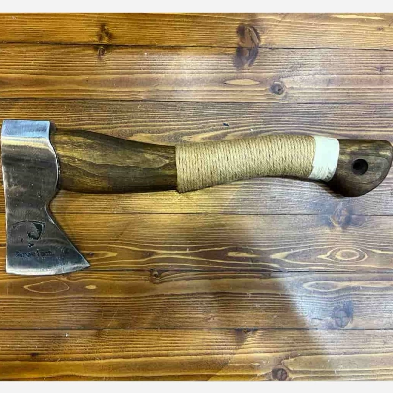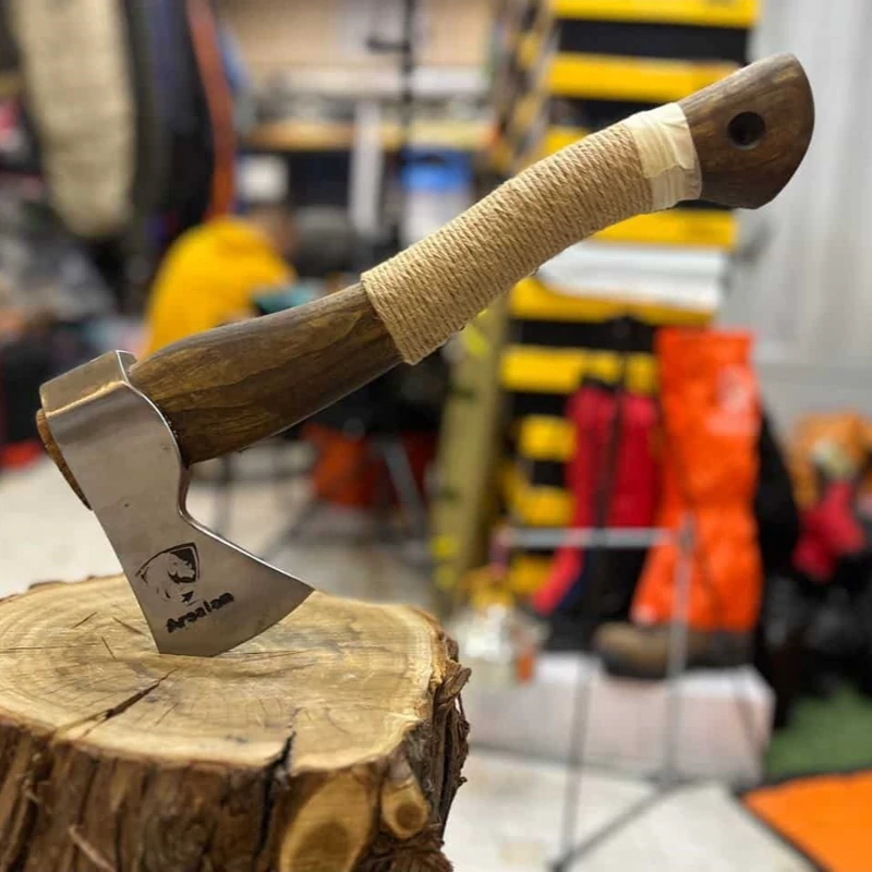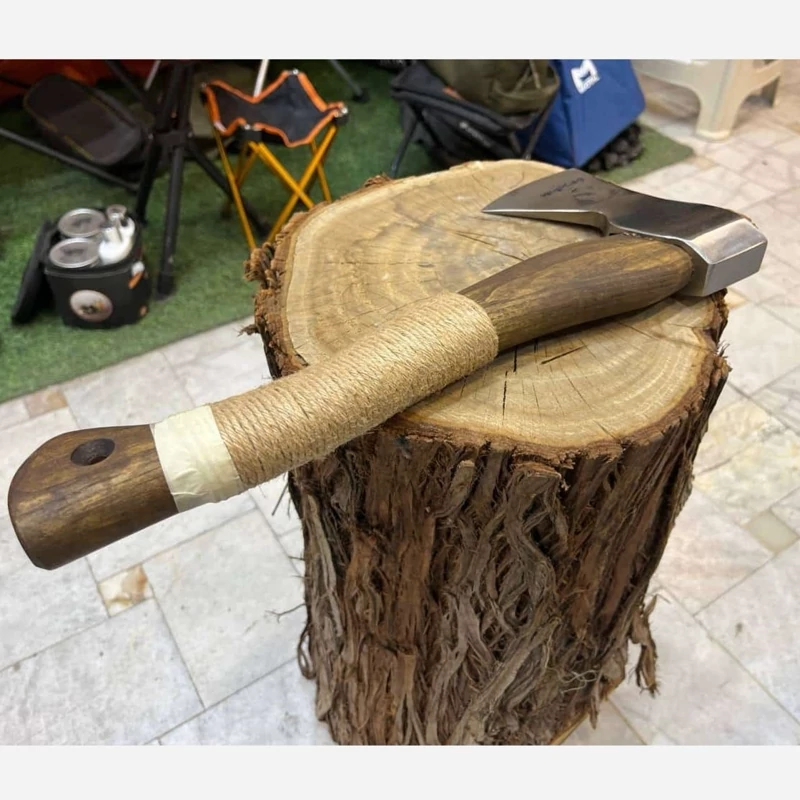 وزن محصول : 866گرم جنس دسته :چوب روغن خورده نوع تیغه: مدل T6 برند ارسلان دارای خدمات پس از فروش شرکت ارسلان دسته چوبی دارای طناب کنفی در قسمت دور