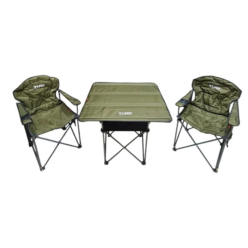 طراحی شده برای دو نفر است که حمل و نگهداری آسان آن به دلیل ساختار تاشو فراهم شده است. میز دارای ابعاد 46×46×70 سانتیمتر و دو طبقه است و یک جیب جانبی برای قرار دادن وسایل ضروری روی آن تعبیه شده است. صفحه میز از جنس برزنت ساخته شده و استحکام کافی برای استفاده روزمره را ارائه میدهد. صندلیها ابعادی برابر با 90×50×63 سانتیمتر دارند و فریم فلزی آنها با روکش برزنت پوشانده شده است. این طراحی باعث مقاومت در برابر وزن تا 120 کیلوگرم برای هر صندلی شده است و سطح نشیمن راحتی را فراهم میکند. نصب ست بهصورت دستی انجام شده و جمع شدن آن بدون ابزار امکانپذیر است. جای دست و جای لیوان روی صندلیها استفاده از آنها را در طول استراحت یا وعدههای غذایی در طبیعت آسان میکند. وزن کل مجموعه 11٫2 کیلوگرم است و به راحتی در صندوق خودرو یا کولهپشتی بزرگ حمل میشود. با این مجموعه، کاربران میتوانند فضای استراحت منظم و کارآمد در محیطهای باز داشته باشند و از دوام و پایداری تجهیزات اطمینان حاصل کنند، در حالی که کاربرد و طراحی تاشو آن، حمل و نگهداری را به شکل ساده و عملی امکانپذیر میکند.