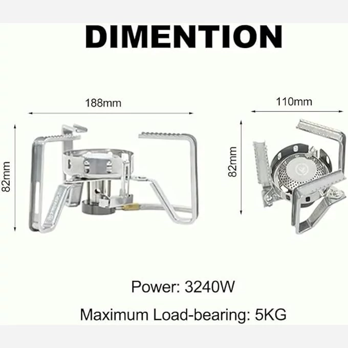 ساختار فولادی آن شعله چرخان قدرتمند 3240 واتی را برای گرمای پایدار و با شدت بالا در بر می گیرد. کنترل دقیق آن امکان پخت یکنواخت و کارآمد را فراهم می کند که برای انواع نیازهای آشپزی در فضای باز مناسب است.