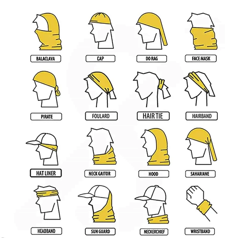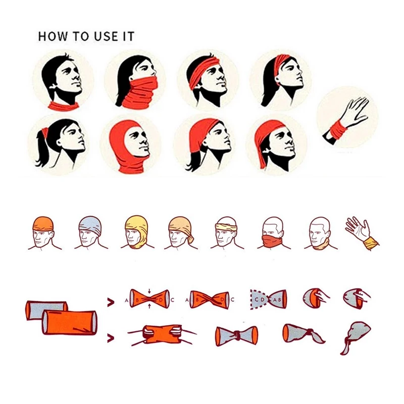 -قابل استفاده به عنوان: سربند، اسکارف، کلاه، کلاه طوفان، هدبند، بازوبند، ماسک، دستمال گردن و …