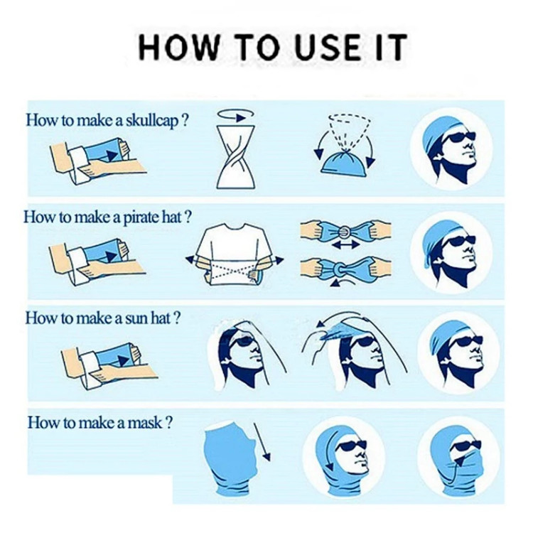 -قابل استفاده به عنوان: سربند، اسکارف، کلاه، کلاه طوفان، هدبند، بازوبند، ماسک، دستمال گردن و …