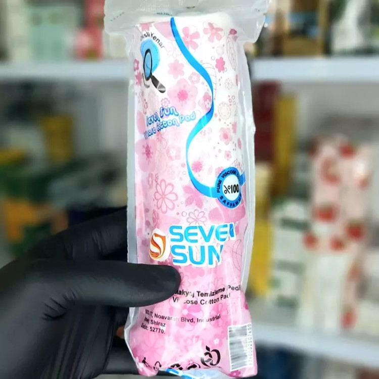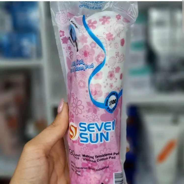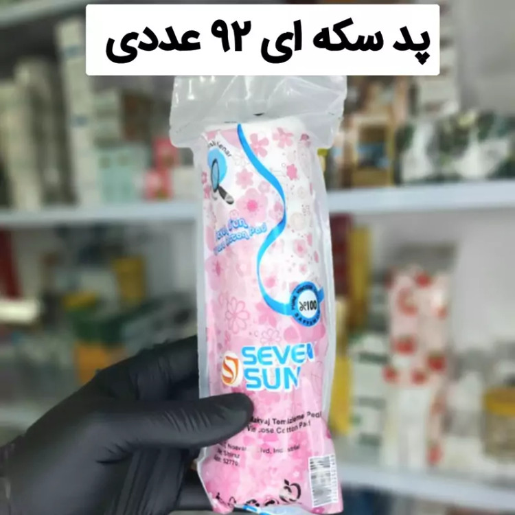 نام تجاری: SEVEN SUN .پد سکه ای ۹۲ عددی بسیار لطیف با جذب بالا مدل چشمی دولایه دور دوخت در بسته بندی 92 عددی مناسب برای پاک کردن سطح پوست