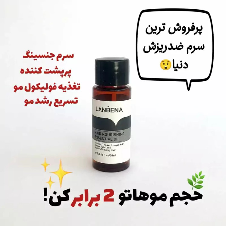 سرم تقویت مو لانبنا LANBENA Hair Growth Essential Oil افزایش و تسریع در رشد مو تغذیه کننده ریشه مو ترمیم موهای آسیب دیده جلوگیری از ریزش مو تقویت و تحریک فولیکول مو حاوی عصاره زنجبیل، جنسینگ جلوگیری از طاسی سر تقویت ریشه مو (افزایش استحکام ساقه موهای نازک شده)