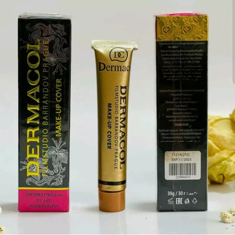 کرم پودر گریم درماکول حجم ۳۰ گرم شماره ۲۱۱ کاور فوق العاده مناسب ب ای رفع تیرگی دورچشم و جای جوش ضد حساسیت ضد آب