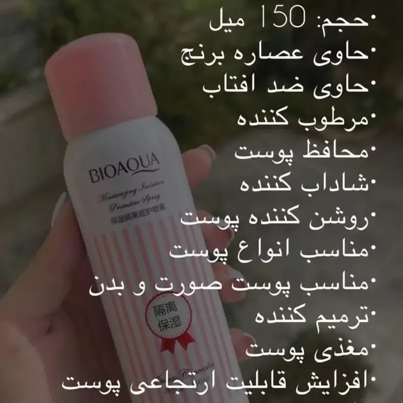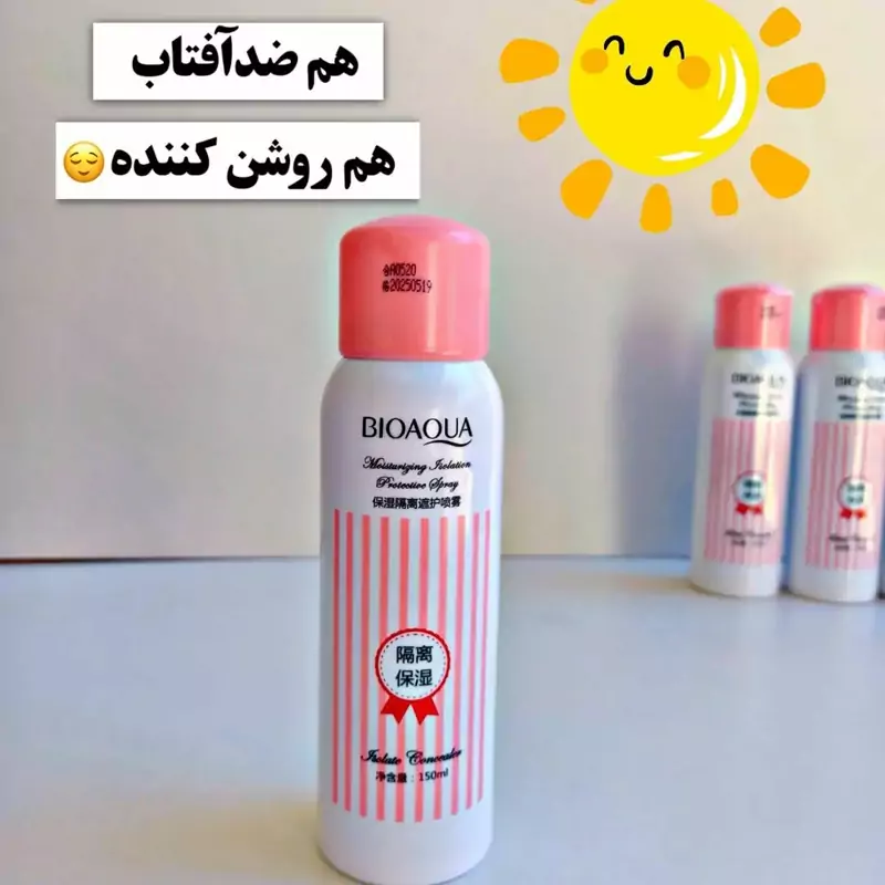 اسپری ضد آفتاب و روشن کننده برند : بیوآکوا حجم : ۱۵۰ میلی لیتر اسپری ضد آفتاب بیوآکوا سرشار از عصاره انار است ک این ویژگی به این ضد آفتاب در کنترل چربی پوست کمک میکند و در عین حال پوست را آبرسانی و شفاف و روشن میکند. این اسپری بسیار سبک و فاقد هرگونه چربی میباشد و شما را برای داشتن یک آرایش بی نقص کمک میکند. و بدون چربی بودن و بافت سبک این محصول باعث میشود ک گزینه مناسبی برای زیر آرایش محسوب شود. سفید کننده روشن کننده بدون چربی مقاوم در برابر اشعه مضر خورشید