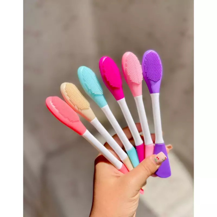 براش و فیس براش ۲ طرفه جنس سیلیکونی و با کیفیت مناسب برای زدن ماسک و اسکراب و... ماساژور صورت چند کاربری مختلف پاکسازی پوست قابل شستشو مناسب برای لایه برداری