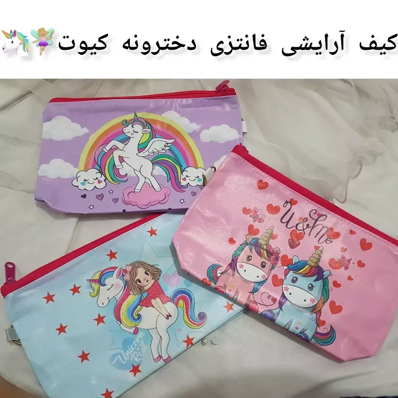 کیف آرایشی دخترونه در طرح های دختر،یونیکورن،و.. بسیار جا دار طرح زیبا و دخترونه فانتزی کیفیت عالی