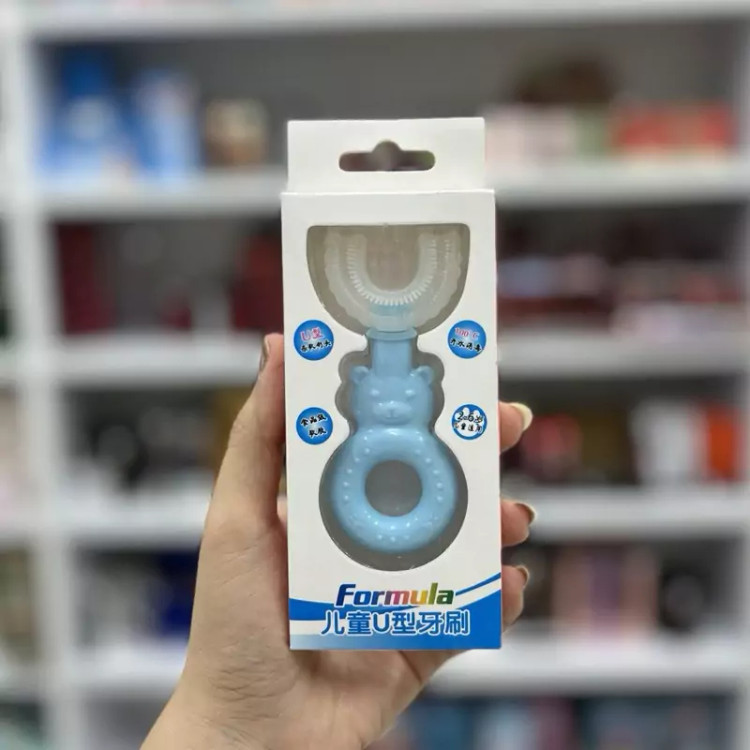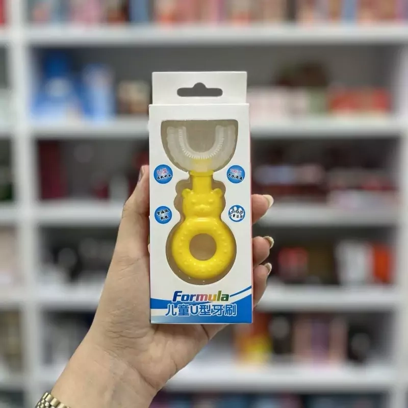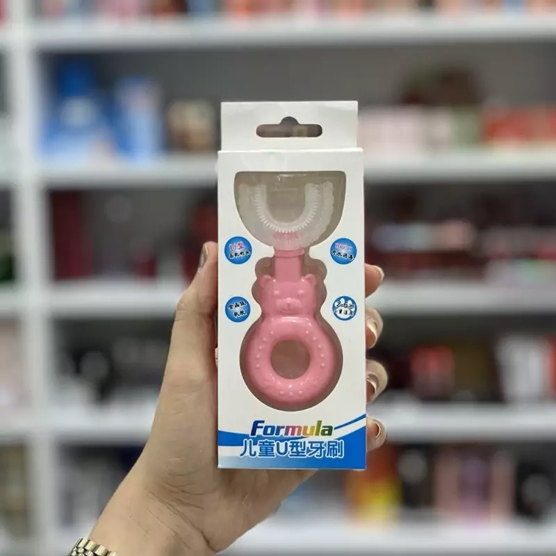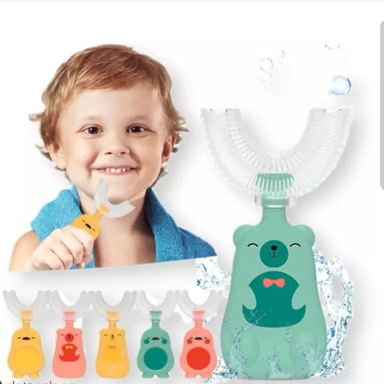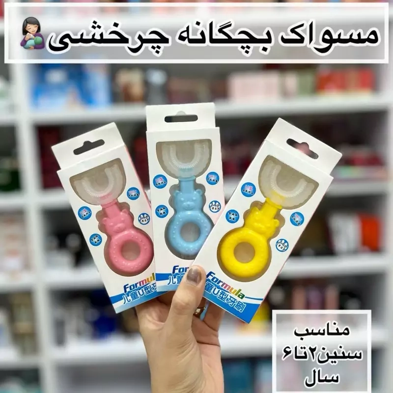 مسواک سیلیکونی چرخشی مخصوص کودکان طراحی U شکل سیلیکونی نرم 360 درجه موجود در 3 رنگ فاقد مواد مضر
