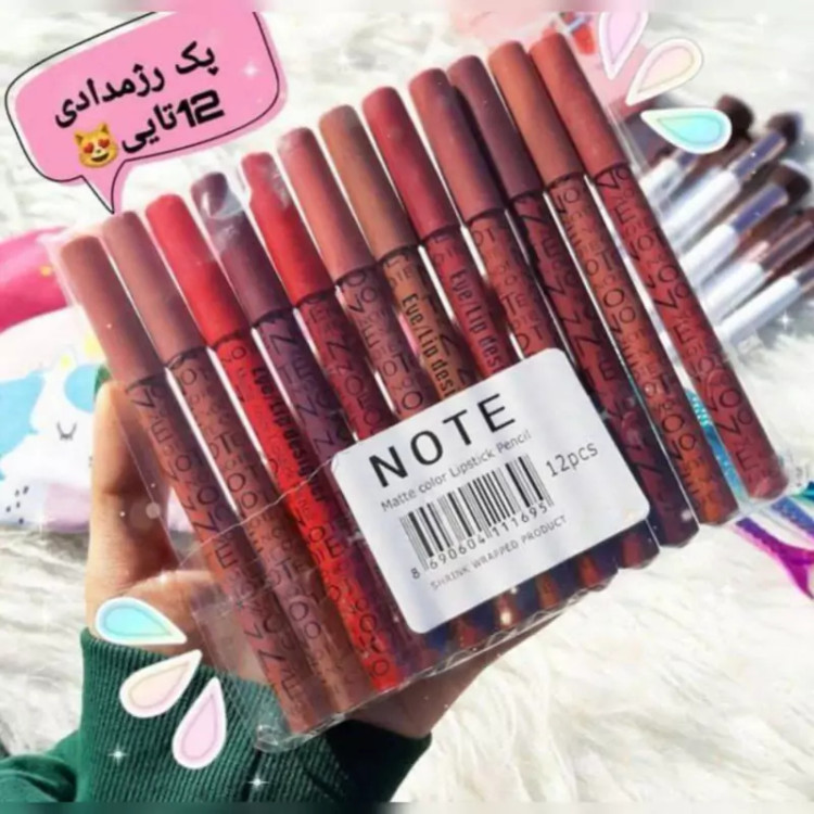 پک 12 عددی رژ لب مدادی نوت در رنگ های جذاب