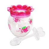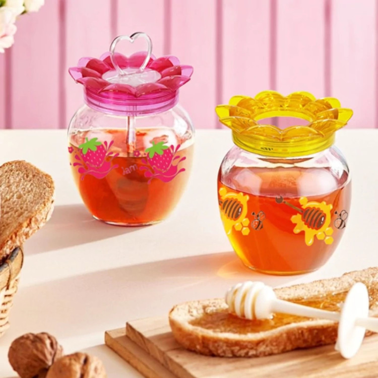ظرفی متفاوت با طراحی فانتزی ، زیبا و دوست داشتنی که متناسب با سلیقه های مختلف می باشد . این محصول ، ست دو عددی ظرفعسل و مربا طرح گل نام دارد که از جنس پلاستیک فشرده مقاوم تولید شده . ظرفی دارای بدنه شفاف با دیواره های قوس دار که قابلیت مشاهده محتویات درون محفظه را فراهم می کند ، به طوری که رنگ مربا وعسل درون ظرف ، خود به تنهایی ظاهری زیبا پدید می آورد . اما اوج جذابیت ظرف ، درب آن بوده که به شکل گل طراحی شده ، گلی که گلبرگ های آن شفاف و در عین حال رنگی هستند . این گل در میان خود قلبی را جای داده که علاوه بر ظاهر زیبا ، نقش دسته قاشق مربا وعسل خوری همراه ظرف را برای دسترسی آسان کاربر ایفا می کند . قاشق در میان گل به صورت ایستاده و ثابت جای گرفته و به راحتی قابل استفاده می باشد . از این ظرف مربا وعسل خوری شیک می توانید برای نگهداری و همچنین سرو انواع مربا و عسل استفاده نمایید .