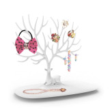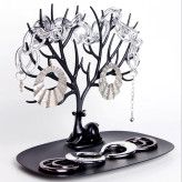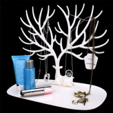 آویز جواهرات طرح گوزن ارائه شده در دو رنگ سفید و مشکی مناسب برای نگهداری انواع زیورآلات با امکان استفاده به صورت رومیزی. این استند دارای یک صفحه نگهدارنده و یک آویز طرح گوزن می باشد که می توانید هر نوع زیورآلاتی را بر روی شاخ های گوزن آویزان کنید و زیبایی اتاق خود را چندین برابر نمایید. با استفاده از آویز جواهرات طرح گوزن زیورآلات خود را همیشه در دسترس خواهید داشت و به راحتی می توانید آنها را انتخاب و استفاده نمایید. با آویزان کردن گردنبند و دستبند های خود به شاخ گوزن دیگر زنجیرهای شما گره نمی خورند و زیورآلات شما آسیب نخواهند دید. آویز جواهرات طرح گوزن علاوه بر جنبه تزئینی باعث نظم بخشیدن به زیورآلات شما نیز خواهد شد