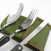 ست قاشق چنگال مسافرتی تاشو به همراه کیف برزنتی کمری مناسب برای گردشگری و کوهنوردی با حجم و وزن بسیار کم. ست قاشق و چنگال سفری نیاز شما را در مسافرت های دور و نزدیک برطرف خواهد کرد. چرا که داشتن چاقو ، قاشق و چنگال شخصی از وسایل ضروری در گردشگری و کوهنوردی می باشد. از ویژگی های دیگر قاشق و چنگال سفری می توان به جنس استیل مرغوب و دسته های پلاستیکی بادوام آن اشاره کرد.