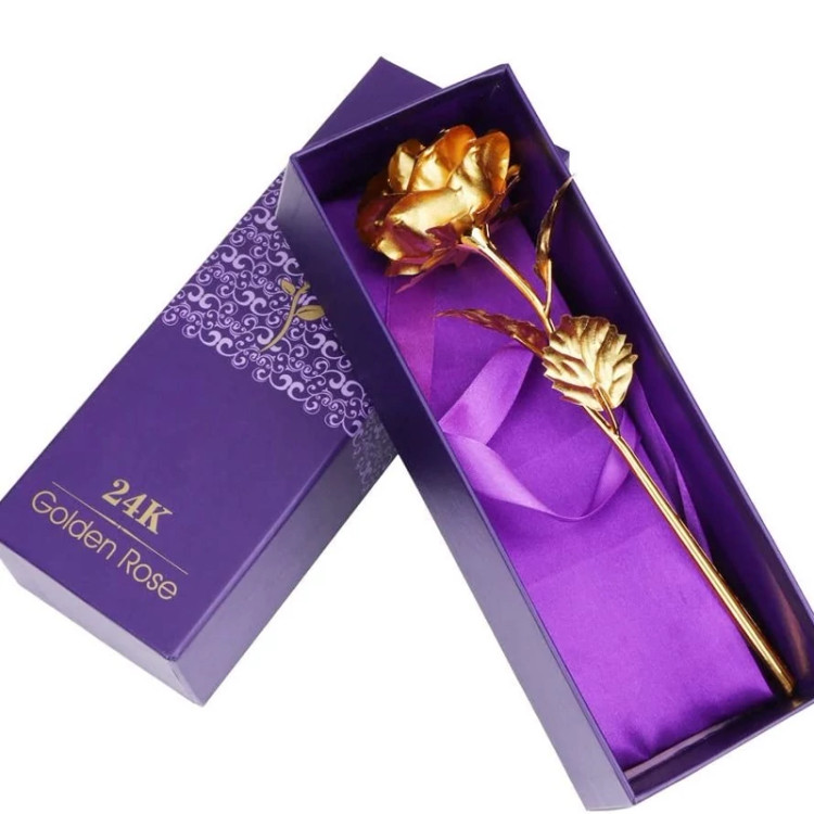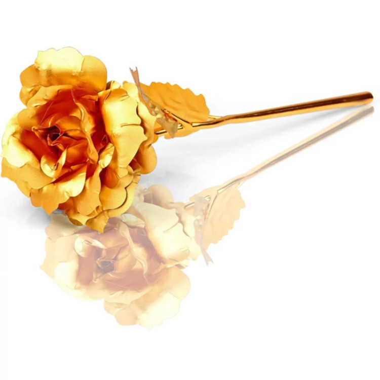 شاخه گل رز طلایی ، محصولی با طراحی بسیاری زیبا و چشم نواز است . با توجه به رنگ طلایی یک دستی که این شاخه گل دارد می توان ترکیب حاصل از طراحی و رنگ را عامل جلوه زیبای آن دانست . گل طلایی ، دارای بسته بندی رسمی و در عین حال شیکی می باشد که آن را به عنوان یک هدیه خاص و متفاوت معرفی نموده است . رنگ شاخه گل ثابت بوده و همراه جعبه نیز یک ساک مخصوص با طراحی ظاهری مشابه با جعبه وجود دارد که می توانید از آن برای حمل گل رز هدیه استفاده نمایید .