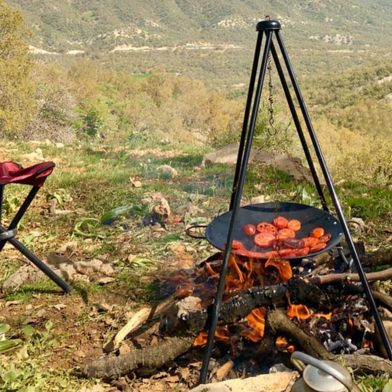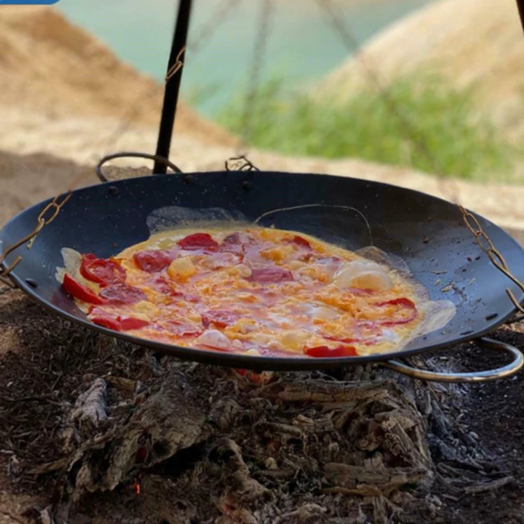 3 قلاب آویز تعبیه شده در سه طرف تابه برای اتصال به پایه و منقل (با استفاده از زنجیر)