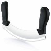محصولی نوین ، زیبا در عین سادگی و البته بسیار کارآمد که دارای تیغه ای هلالی از جنس استیل است . نوع تیغه باعث می شود تا بدون نیاز به برداشتن های متوالی برش زن از روی سطح و یا اصطلاحاً جداکردن تیغه از سطح بتوانید به صورت سریع تر عمل برش را انجام دهید . دو دسته تعبیه شده در دو طرف تیغه امکان استفاده از هر دو دست برای کار را فراهم آورده ، خصوصیتی که تسلط بیشتر و البته صرف انرژی کمتر برای کاربر در حین کار را به همراه دارد ، بنابراین به سادگی می توانید پیتزا و البته سبزیجات را با استفاده از کاتر پیتزا هلالی برش زده و استفاده نمایید . قابلیت شستشو و تیز کردن تیغه را نیز به دیگر خصوصیات کالا نیز باید اضافه کرد .