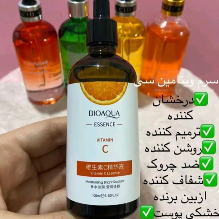 سرم ویتامین سی بیوآکووا ، محصولات پوستی سانیا 😍😍 ویژگی محصول:👇👇👇👇 حجم 100 میل انقضا 2026 ضد چین و چروک مناسب انواع پوست تنظیم رطوبت پوست آبرسانی عمیق پوست جلوگیری از پیری زودرس رفع درمانی قرمزی و التهاب پوست حاوی ویتامین C و جوان کننده صورت حذف قطعی جای جوش و لک های پوستی روشن کننده، شفاف کننده و تقویت کننده پوست 👇👇👇👇👇👇👇 ویتامینC سرشار از فواید موثر برای سلامت پوست است. استفاده از این ویتامین به شکل موضعی، تاثیر آن بر پوست را چند برابر میکند. معمولا از سرمهای پوستی جهت جذب ویتامین به شکل سطحی، استفاده میشود؛ بهطوریکه میتوان گفت سرم ویتامین سی، پوست شما را غنی از این ماده مغذی میکند و سلامت و طراوت را به چهرهتان بازمیگرداند. فواید ویتامین سی برای پوست • استفاده از سرم ویتامین سی، به افرادی که زمان زیادی را در خارج از خانه و زیر نور خورشید سپری میکنند، توصیه میشود. زیرا این ویتامین، به دلیل خاصیت آنتی اکسیدانی که دارد، پوست را در برابر اشعه ماوراءبنفش مقاوم میکند. • بعضی افراد مستعد ایجاد لکههای پوستی در طول عمر خود هستند. تحقیقات نشان داده است که استفاده از ویتامین سی به مدت 16 هفته، میتواند تاثیر قابل توجهی بر کاهش این لکهها و حذف آنها داشته باشد. • سرم ویتامین سی، یکی از بهترین محصولاتی است که جهت رفع چینوچروک صورت پیشنهاد میشود. میتوان گفت که ویتامینC ، موثرترین ماده برای به تعویق انداختن روند پیری است. • ویتامین سی با تحریک تولید کلاژن برای پوست باعث میشود که پوست شما خاصیت ارتجاعی خود را حفظ کند و به جوانسازی پوست شما کمک میکند؛ و خاصیت آنتیاکسیدانی آن، کلاژن را از آلودگیهای محیطی محافظت میکند تا خاصیت خود را بهمدت طولانیتری حفظ کند. • معمولاً برای افرادی که دچار زخمهای سطحی هستند، استفاده از سرم ویتامین سی پیشنهاد میشود. زیرا این ویتامین کمک میکند که زخمهای باز سریعتر بسته شوند و رد کمتری از آنها بر پوست باقی بماند. • افرادی که دارای پوست خشک هستند، معمولاً از سرم ویتامین سی برای مرطوب کردن پوستشان استفاده میکنند؛ زیرا این افراد مستعد ایجاد چینوچروکهای بیشتری هستند و استفاده از ویتامینC بهصورت موضعی میتواند میزان ایجاد خطوط صورت را بهطور قابل توجهی کاهش دهد.