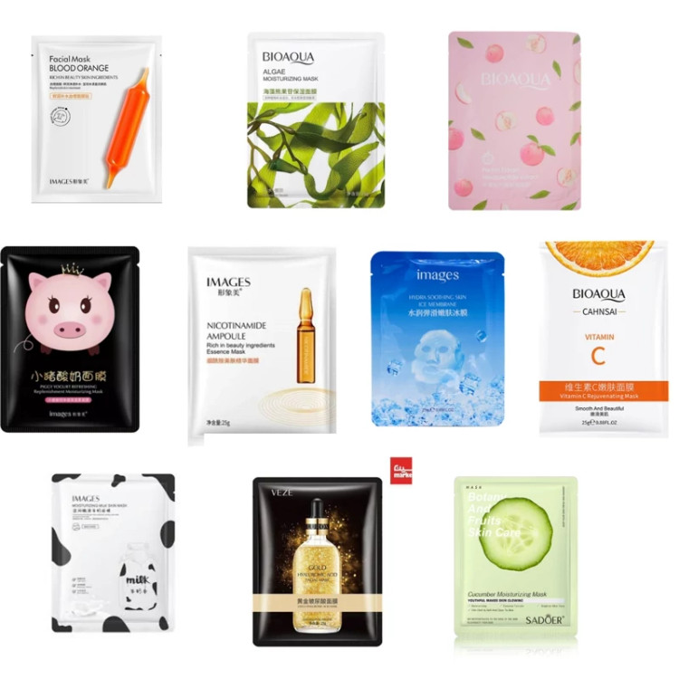 پک 10 عددی ماسک ورقه ای شامل ده ماسک مختلف از برندهای بصورت رندوم