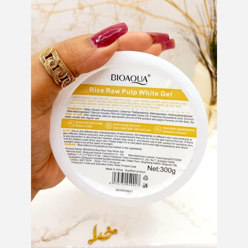 ژل آبرسان و روشن کننده برنج بیوآکوا . محصولات پوستی سانیا 😍😍😍😍😍🤨🤨 وزن: 300 گرم رطوبت رسان قوی پوست تغذیه کننده پوست رفع کننده زبری و خشکی پوست نرم و لطیف کننده پوست صاف کننده پوست کنترل کننده میزان چربی پوست روشن کننده پوست کاهش دهنده چین و چروک ضد پیری حاوی عصاره برنج و عصارههای گیاهی درخشان کننده پوست
