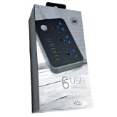چند راهی برق و شارژر K05 دارای چندین قابلیت کاربردی می باشد این محصول دارای سه خروجی یونیورسال برق شهری (قابلیت اتصال انواع سرسوکتهای EU-AU-US-UK ) برای انواع دوشاخه و سه شاخه همچنین 6 خروجی یو اس بی USB استاندارد برای شارژ و تغذیه انواع خروجی های USB می باشد . همچنین این محصول دارای محافظ بدنه برای حفاظت کودکان و قابلیت ضد حریق تا دمای 750 درجه می باشد . طول کابل این محصول 2 متر بوده و قابلیت سویچ اتوماتیک بین ولتاژ ورودی 110 تا 250 ولت را دارد. خروجی 13 آمپر آن می تواند هر وسیله ای تا 2500 وات را تامین کند و هر خروجی یو اس بی آن 3.4 آمپر توان دارد.