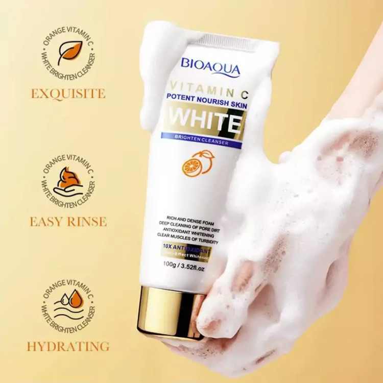 فوم روشن کننده ویتامین سی بیوآکووا ، محصولات پوستی سانیا 😍😍😍😍😍 ویژگی های فوم شستشوی صورت سفید کننده ویتامین سی بیوآکوا: پاک کننده قوی و عمیق پوست صورت حفظ رطوبت پوست ضدالتهاب و تسکین دهنده جوانساز و ضدلک روشن و درخشان کننده پوست آنتی اکسیدان: یعنی اثر سفیدکنندگی 10 برابر بستن منافذ سطحی و عمیق فرموله شده با 3٪ ویتامین C فعال و آنتی اکسیدان قوی این فوم شستشوی صورت بیوآکوا حاوی ترکیبات ویتامین C است و رطوبت پوست را جبران می کند و خشکی پوست را بهبود می بخشد. ویتامین C یک آنتی اکسیدان قوی است که رادیکال های آزاد را خنثی می کند و چین و چروک ها را صاف می کند. پوست را سفید می کند و با استفاده منظم ۲ بار در روز، رنگدانه ها و کک و مک را از بین می برد. این محصول به آرامی به عمق پوست و منافذ آن نفوذ کرده و چربی و هرگونه مواد باقیمانده آرایش را تمیز می کند. ویتامین C یک گزینه مطمئن برای مراقبت پوستی است. با توجه به مزایای ضد پیری آن، این آنتی اکسیدان حیاتی به دلیل قدرت بازیابی عمیق و محافظت از پوست شناخته میشود. حال تاثیر این آنتی اکسیدان در این محصول ۱۰ برابر بیشتر است. ویتامین سی می تواندتولید ملانین را مهار کند. لکه های تشکیل شده و رنگدانه ها را روشن کندو همچنین درخشندگی پوست را بهبود بخشد. فوم سفید کننده ویتامین سی با نفوذ با لایه های پایین پوست سلول های آسیب دیده را فعال میکند و باعث تقویت متابولیسم پوست می شود که در نهایت سلامت و سر زندگی را به پوست شما بر میگرداند تا پوستی مستحکم و کشسان داشته باشید.