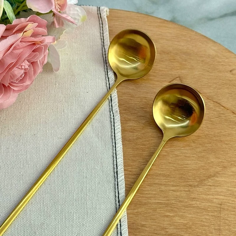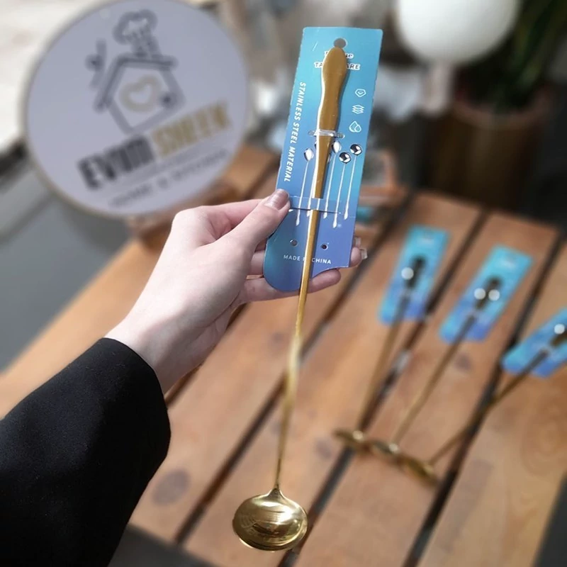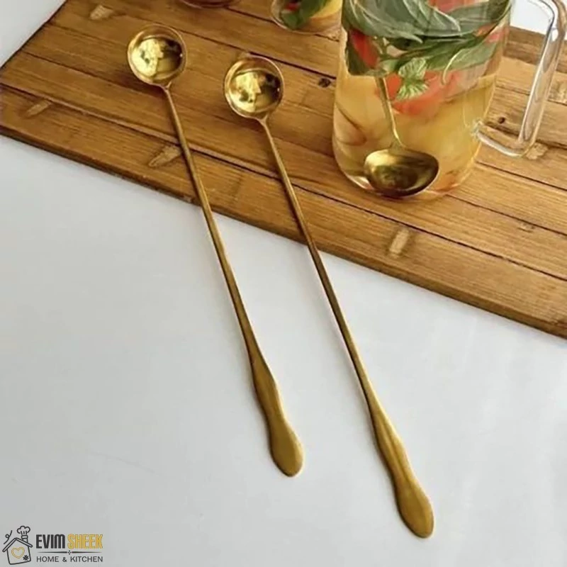 قاشق بلند پارچ طلایی یک قاشق بلند و باریک است که به طور خاص برای استفاده در پارچها، لیوانهای بلند، و مخلوطکنها طراحی شده است. طراحی ارگونومیک و وزن مناسب آن، استفاده از این قاشق را در تهیه و سرو انواع نوشیدنیها، از شربت و دمنوش گرفته تا کوکتل و اسموتی، بسیار آسان و دلپذیر میکند.این محصول evimsheek ، فراتر از یک قاشق ساده، یک المان دکوراتیو است که به میز پذیرایی شما شکوهی بیبدیل میبخشد. چه برای هم زدن نوشیدنیها، سرو شربت یا حتی بهعنوان یک شیء تزئینی، این قاشق طلایی رنگ انتخاب ایدهآلی برای آشپزخانهها و سفرههای مدرن و شیک است.