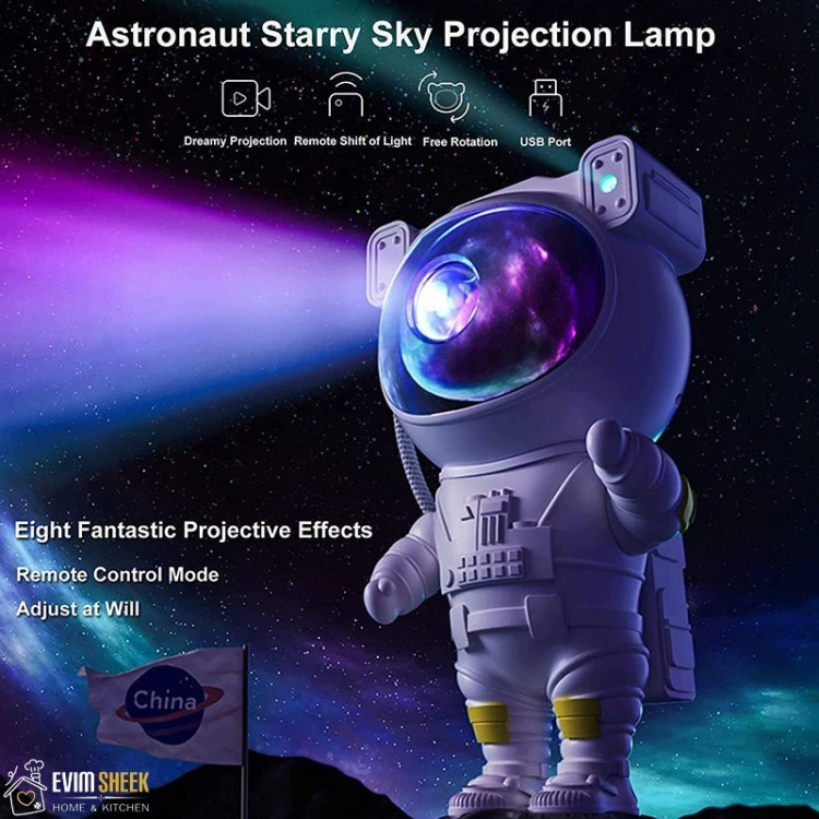 آیا دلتان میخواهد هر شب در اتاق خود یه سفر فضایی کوتاه را تجربه کنید؟ با شب خواب فضانورد evimsheek، دیگر نیازی نیست برای دیدن زیباییهای کهکشان، تلسکوپ به دست بگیرید. این محصول شگفتانگیز با طراحی دوستداشتنی یک فضانورد، نه تنها یه چراغ خواب محسوب می شود، بلکه یه بازتاب کننده جادویی نیز است که با نورهای رنگارنگ و تصاویر خیرهکننده از ستارهها، سیارات و سحابیها، سقف و دیوارهای اتاق شما را به یک آسمان شب پر رمز و راز تبدیل میکند.
