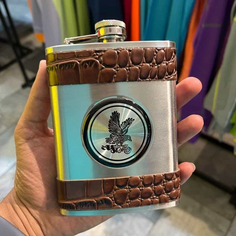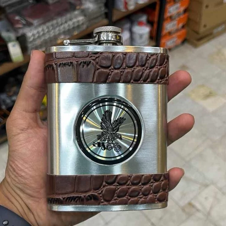 هیپ فلاسک استیل چرم باطرح عقابی 8 OZ