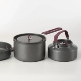 طبق تست های انجام شده هر دو ظروف در برابر روغن و خط و خش مقاومت بسیار خوبی دارند و سالهای سال استفاده از آنها بدون مشکل میسر است. آخرین وسیله موجود در این پک، یک کتری کوچک یک لیتری می باشد که برای دو نفره مناسب است. این کتری با دارا بودن دیواره های ضخیم و دستگیره با عایق می تواند نیاز های شما را از چنین وسیله ای برطرف کند. همچنین ساختار زیرین آن به گونه ای است که حرارت را پخش کرده و به سادگی بر روی سطوح و اجاق های مختلف قرار میگیرد.