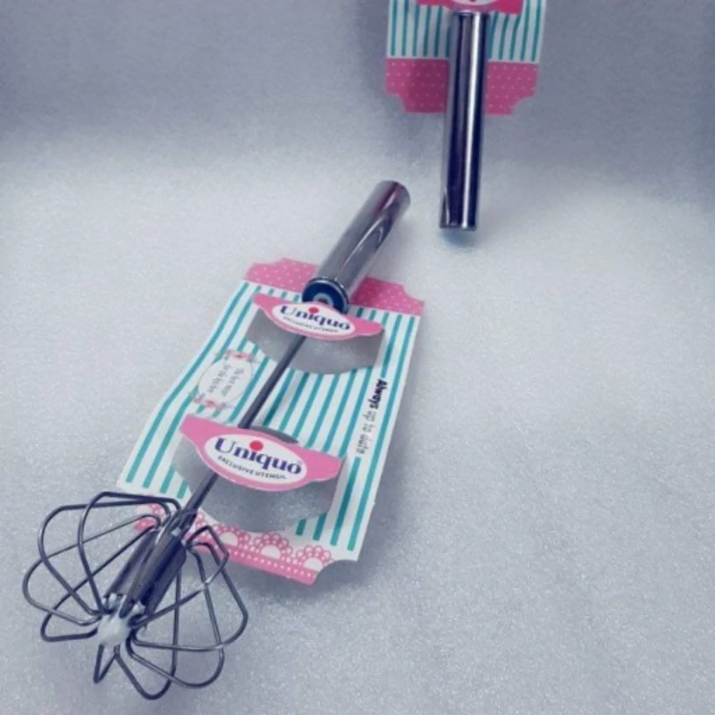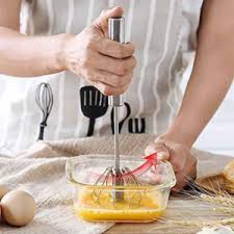 همزن دستی چرخشی نیز از جمله این محصولات است . ابزاری کاملاً کاربردی با طراحی ساده که به راحتی قابل استفاده برای افراد مختلف می باشد . همزن دستی بر خلاف نمونه های مشابه دیگر نیازی به چرخاندن دستگیره مجزا و یا عملی مشابه آن را ندارد ، تنها کافیست همزن را داخل ظرف بگذارید و دستگیره آن را به سمت پایین فشار دهید . سری همزن در خلاف جهت عقربه های ساعت شروع به حرکت می کند و زمانی که دسته به حالت اولیه خود (به سمت بالا) برگردانده می شود ، سری در جهت عکس حرکت می کند . این کار باعث مخلوط شدن مواد غذایی به صورت کامل و یکدست می شود.