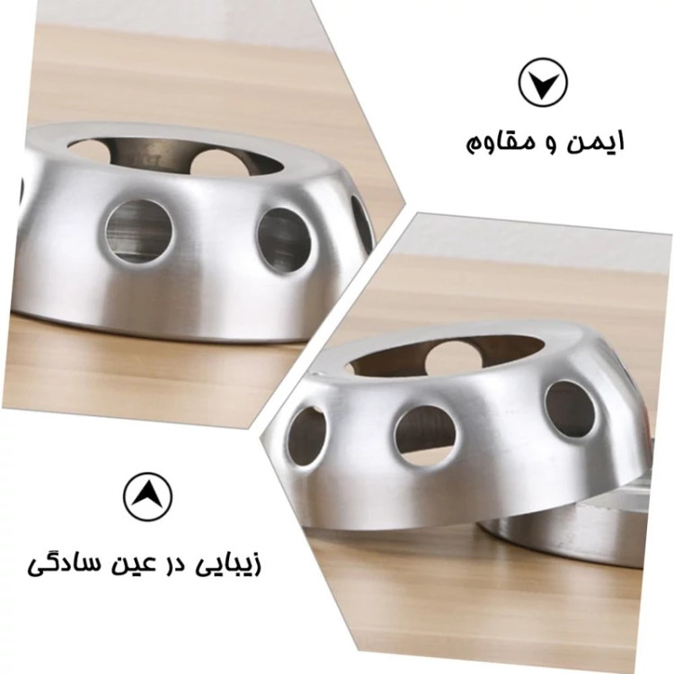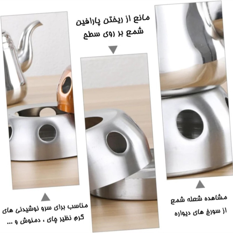 کالایی جدید با طراحی ظاهری خاص و منحصر به فرد که شاید کمتر مشابه آن را دیده باشید . استند دمنوش وارمردار تولید شده از جنس استیل مقاوم و باکیفیت است که ابعاد مناسبی دارد ، بنابراین می توان به سادگی از آن بر روی میز پذیرایی استفاده کرد بدون اینکه فضای زیادی را اشغال کند . جا وارمری قوری دارای کفی یک دست است که درون خود شمع را جای میدهد ، بنابراین پارفین آب شده شمع بر روی سطح نمیریزد . سوراخ های ایجاد شده بر روی بدنه به صورت دورتا دور علاوه بر وجه زیبایی کالا ، امکان دیدن شعله ملایم شمع درون ظرف را به کاربر خواهد داد که جلوه ای منحصر به فرد را پدید می آورد . گرم نگه داشتن قوری چای ، قهوه ، دمنوش و ... ، در عین زیبایی ظاهری ، خصوصیاتی هستند که امکان استفاده از استند وارمر استیل بر روی میز پذیرایی را فراهم آورده اند ، پس متفاوت انتخاب کنید . ویژگی های استند وارمر قوری مدل کلاسیک : طراحی نوین ، زیبا و کاربردی ابعاد کلی : 13.7cm * 5cm تولید شده از جنس استیل با کیفیت سوراخ های طراحی شده بر روی بدنه با قابلیت مشاهده شعله وارمر از بیرون دارای کفی برای جلوگیری از ریختن پارافین شمع بر روی سطح ارائه شده در دو رنگ طلایی و نقره ای مناسب برای سرو نوشیدنی های گرم نظیر چای ، قهوه و دمنوش بر روی میز پذیرایی فاقد شمع وارمر