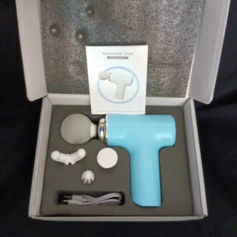 ماساژور تفنگی MINI MASSAGE GUN مدل MG-203 دارای 4 عدد سری ماساژ موجود در فروشگاه قشمی شاپ QESHMISHOP