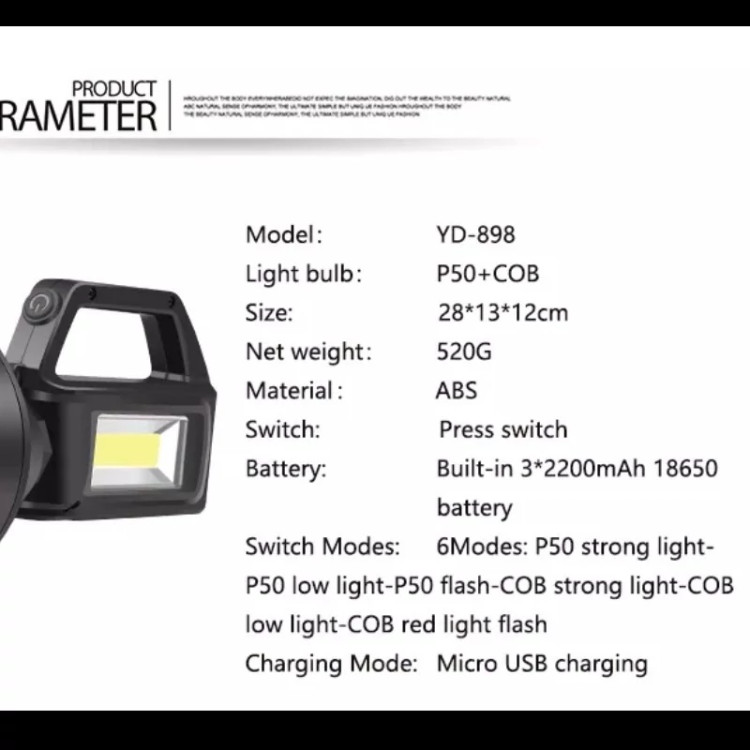 چراغ دستی شارژی LED دو کاره همراه با پاور بانک پرژکتور چراغ قوه مدل YD-898