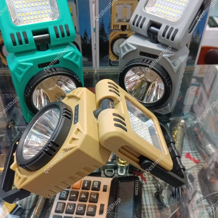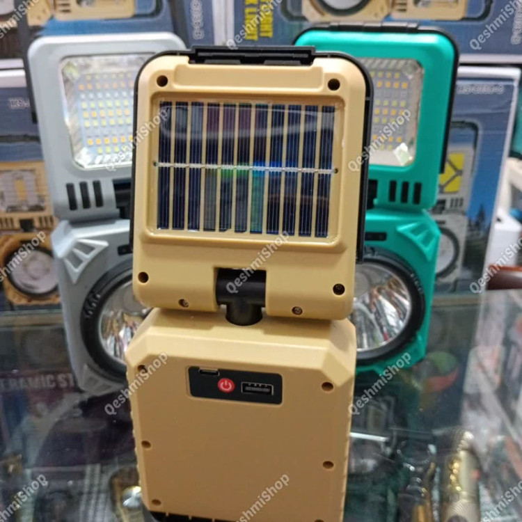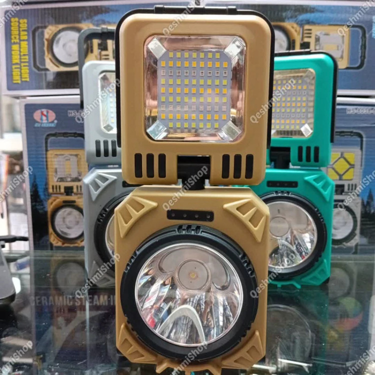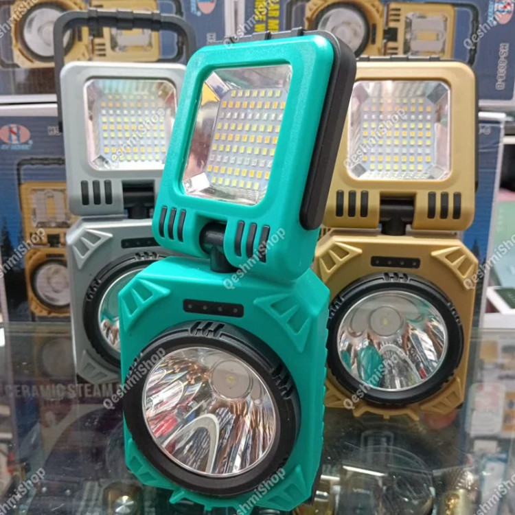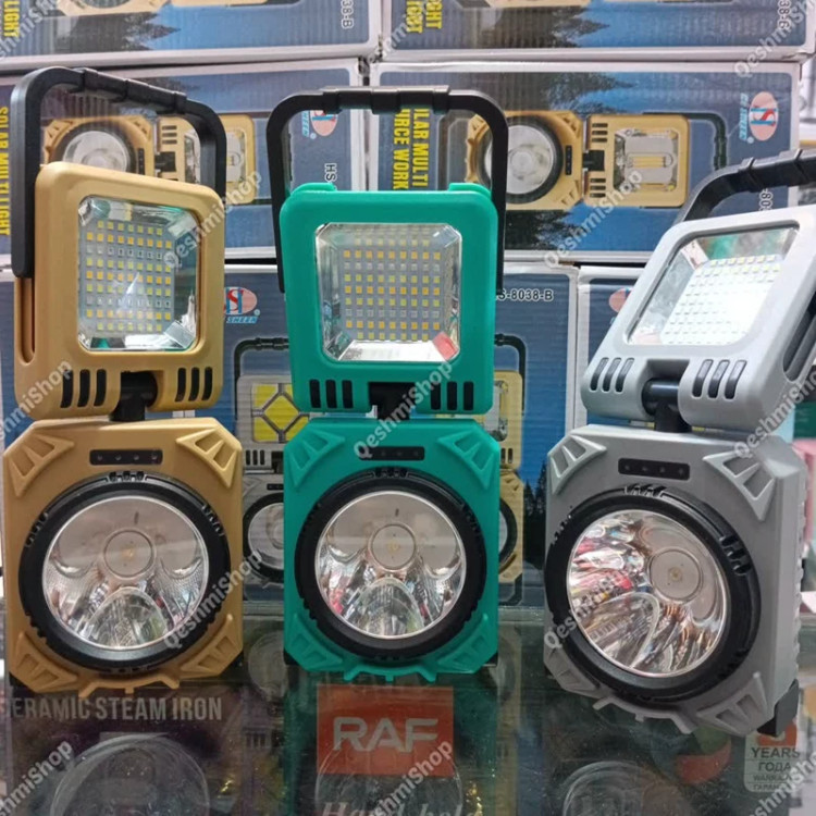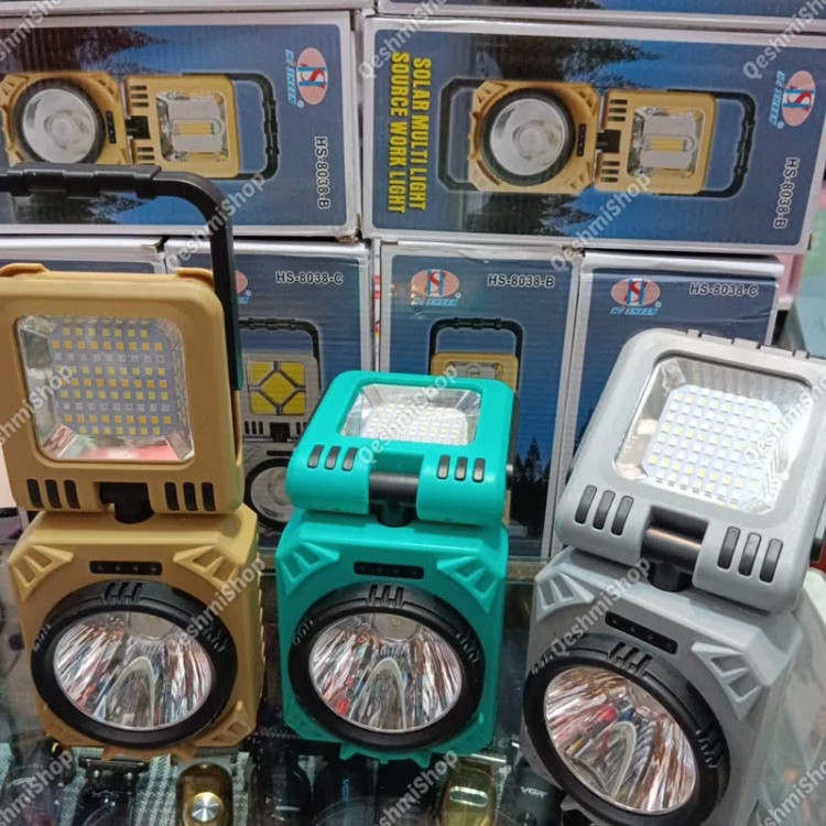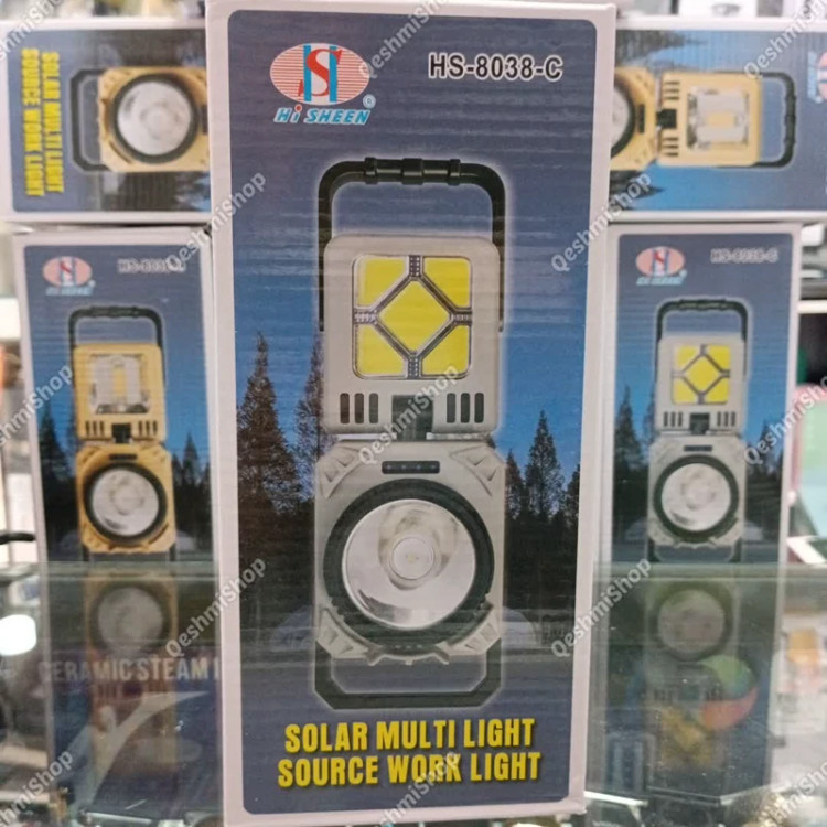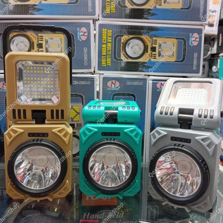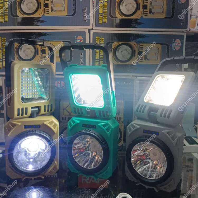 چراغ شارژی مدل HS-8038-B درگاه شارژ تایپ سی خروجی USB دکمه روشن و خاموش پنل سولار چرخش 90 درجه چراغ به پایین و بالا چرخش 360 درجه چراغ دارای دستگیره