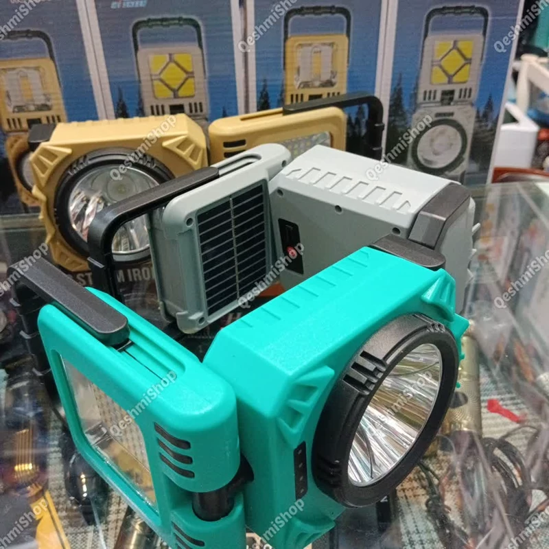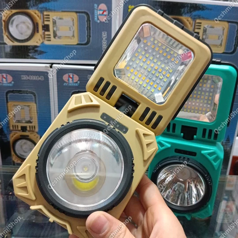 چراغ شارژی مدل HS-8038-B درگاه شارژ تایپ سی خروجی USB دکمه روشن و خاموش پنل سولار چرخش 90 درجه چراغ به پایین و بالا چرخش 360 درجه چراغ دارای دستگیره