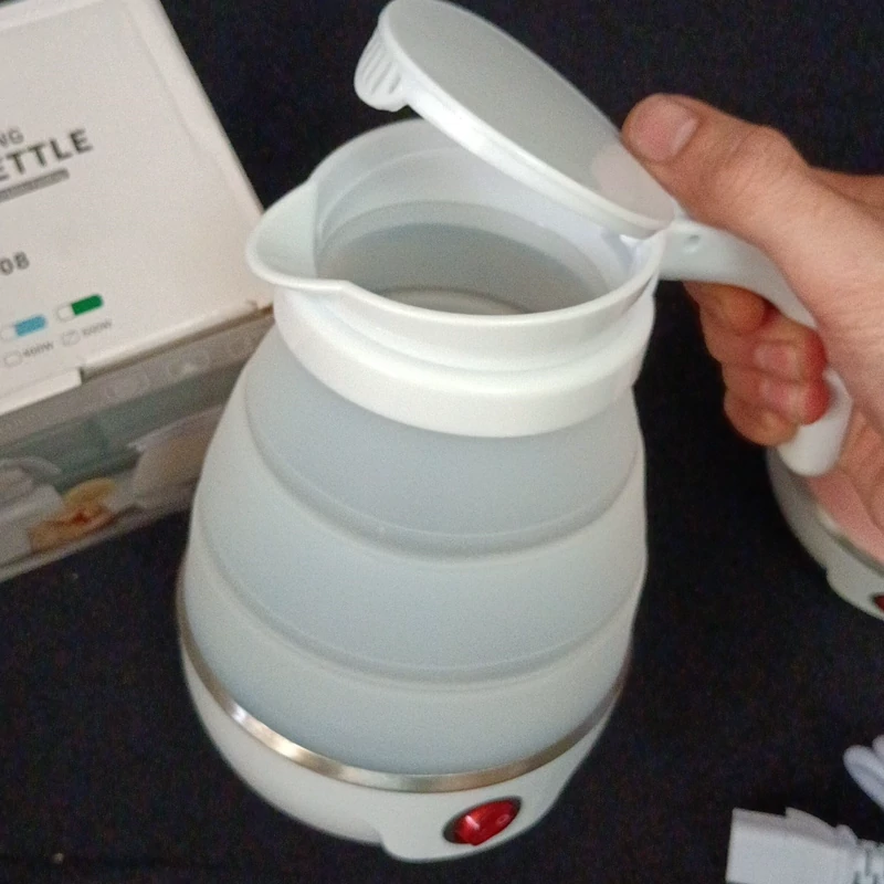 کتری برقی تاشو مسافرتی یک محصول بسیار عالی و کارآمد برای کسانی ست که اغلب اوقات خود را در گردش و مسافرت هستند و دوست دارند بدون آنکه فضای زیادی از ماشینشان اشغال شود یک کتری مخصوص تهیه چای وآب جوش نیز همراه خود داشته باشند تا بتوانند در حین استراحت یک چای داغ دلنشین نیز نوش جان کنند. این کتری از جنس سیلیکون بسیار با کیفیت و درجه یک می باشد که کفی آن نیز از استیل درجه یک بوده ودر پوش باز شو آن نیز از مزایای دیگر آن می باشد. مخصوص زمانهای سفر،کوهنوردی وگردش در طبیعت یا منزل با قابلیت تاشدن است. اگر جزو افرادی هستید که اغلب اوقات فراغت خود را به مسافرت و یا گردش و طبیعت گردی اختصاص می دهید حتما می دانید که داشتن لوازم کامل گردش و پیک نیک از ملزومات یک گردش خوب میباشد یکی از لوازمی که در این مورد می تواند بسیار مهم و ضروری باشد داشتن یک کتری مسافرتی خوب و کارآمد می باشد . کتری برقی تاشو ELECTRIC KETTLE یک محصول 100 درصد خارجی و با کیفیت است. حجم این کتری برقی تاشو 600 سی سی میباشد و با برق شهری کار میکند.
