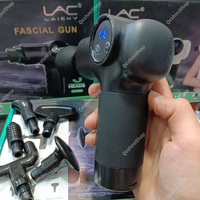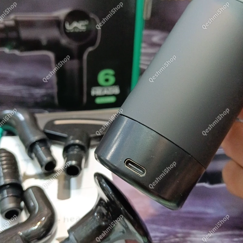 ماساژور تفنگی لایچی مدل l-022mg دارای 6 سری ماساژ قدرت 24وات جنس بدنه پلاستیک ABS ظرفیت باتری 1800 میلی آمپر درگاه شارژ تایپ سی