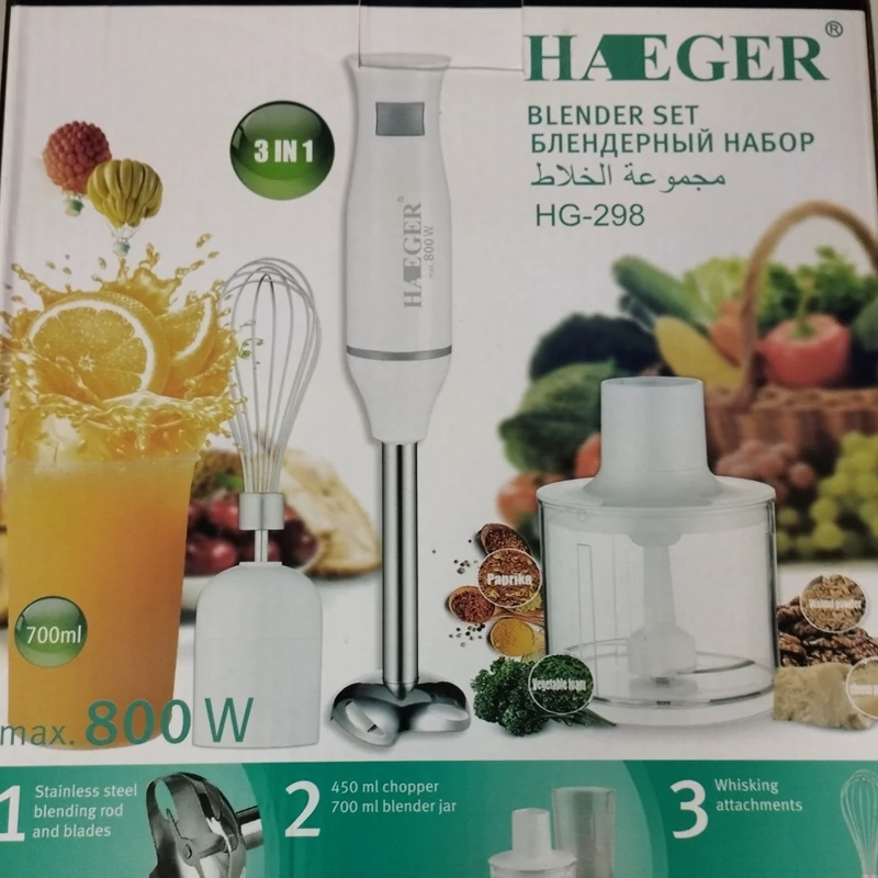 لطفاً قبل از ثبت سفارش از موجودی کالا استعلام بگیرید و بعد ثبت سفارش کنید گوشت کوب برقی سه کاره هایگر مدل hg 298 Haeger 3in1 Blender Set 700ml HG 298