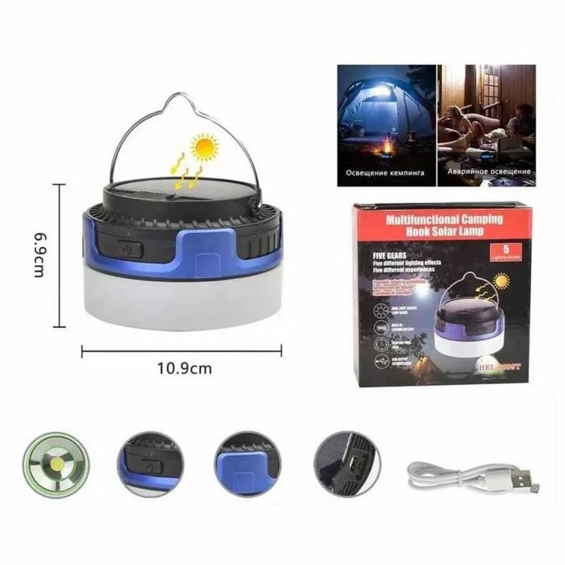 چراغ اضطراری شارژی چادر مدل HEL-0809T 🛠️ توضیحات محصول چراغ آویز قابل شارژ با باتری لیتیوم و پنل شارژ خورشیدی - کد: HEL-0809Т - نوع: روشنایی LED - جنس: پلیکربنات (PC) - توان خروجی: 10 وات - مساحت روشنایی: 6 متر مربع به صورت آویز - شار نوری: 100 لومن - دمای رنگ: 4100 کلوین - شاخص بازتاب رنگ: 90 Ra - ابعاد: 6.9 × 10.9 سانتیمتر - وزن: 300 گرم --- 🔋 ویژگیها - منبع تغذیه: باتری لیتیوم-یون - نوع شارژر 1: کابل USB تایپ سی - نوع شارژر 2: انرژی خورشیدی (زمانبر) - درجه حفاظت: IP44 (مقاوم در برابر پاشش آب) - قابل آویزان شدن - طراحی ارگونومیک - استفاده آسان - کاربردها: مناسب برای کمپینگ، شکار، ماهیگیری و سفرهای طبیعتگردی