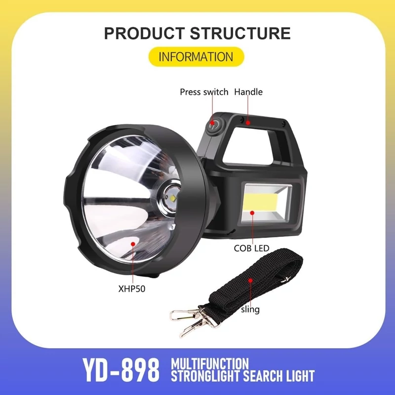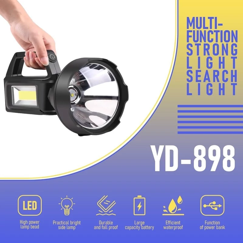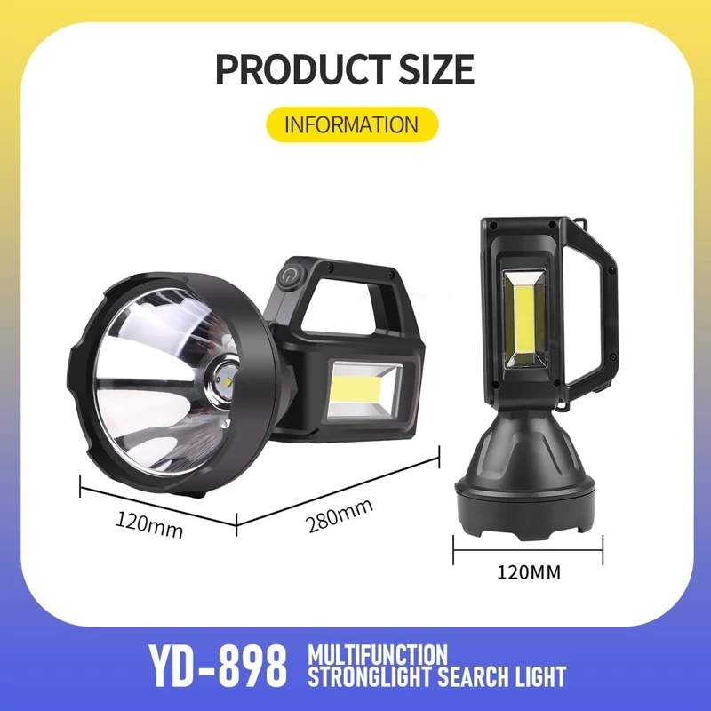 چراغ قوه جستجوی نور قوی چند منظوره: این چراغ قوه قدرتمند که برای استفاده همه کاره طراحی شده است، برای ماجراجویی های فضای باز، شرایط اضطراری و فعالیت های شبانه عالی است.
